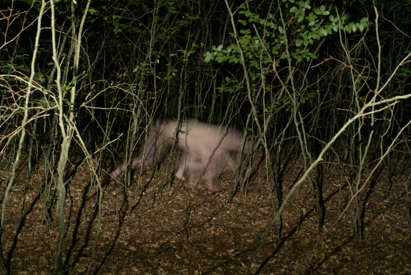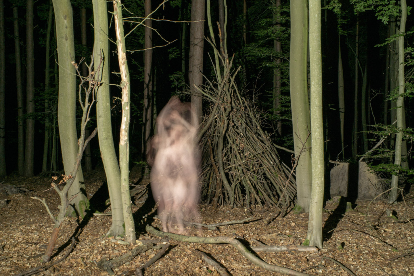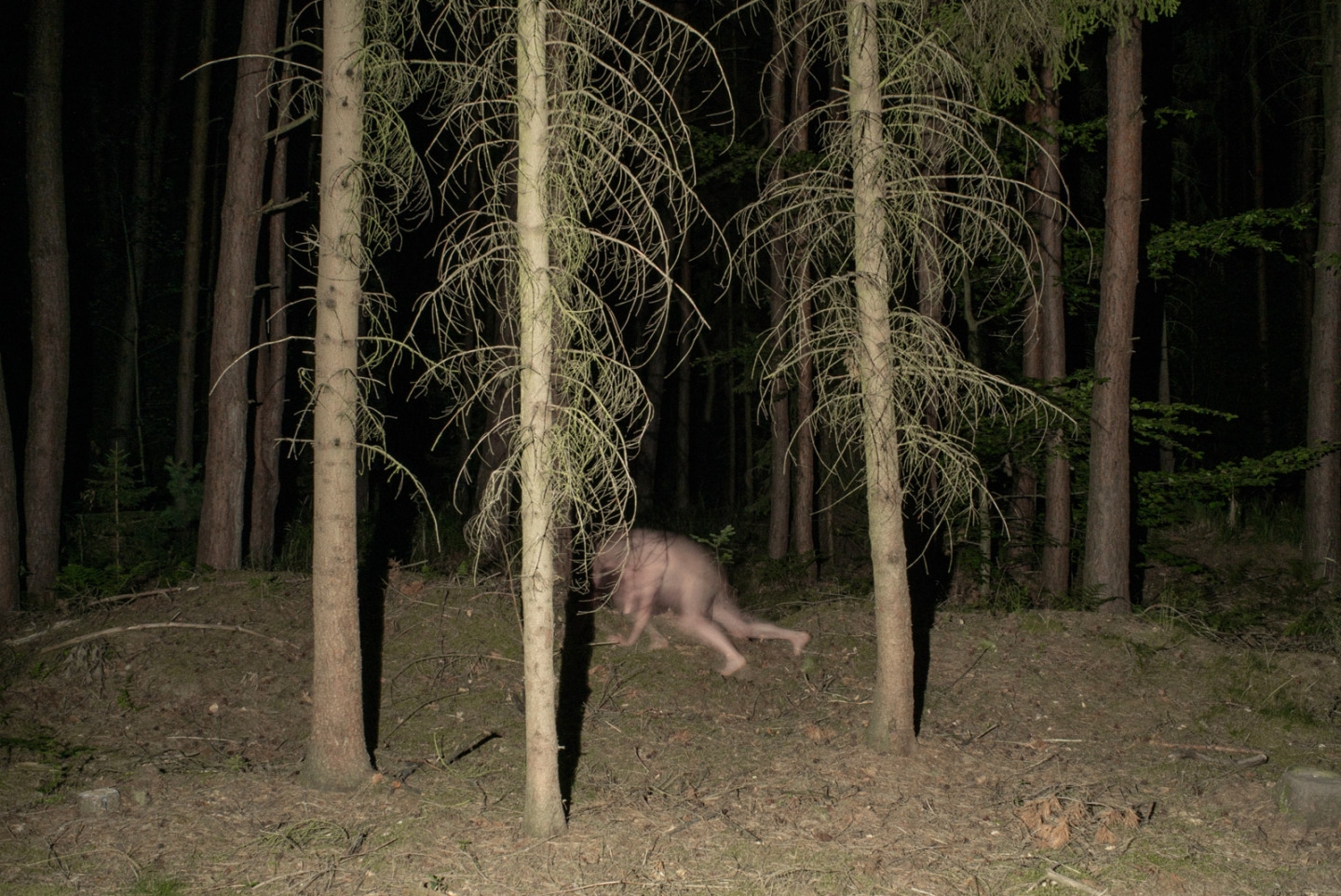 A camera trap takes a picture automatically. In absence of the viewer, the creatures of the forest appear. The forest can as well be seen as a place in the human mind, where the spirit can be free and take any form without the pressure of being observed.