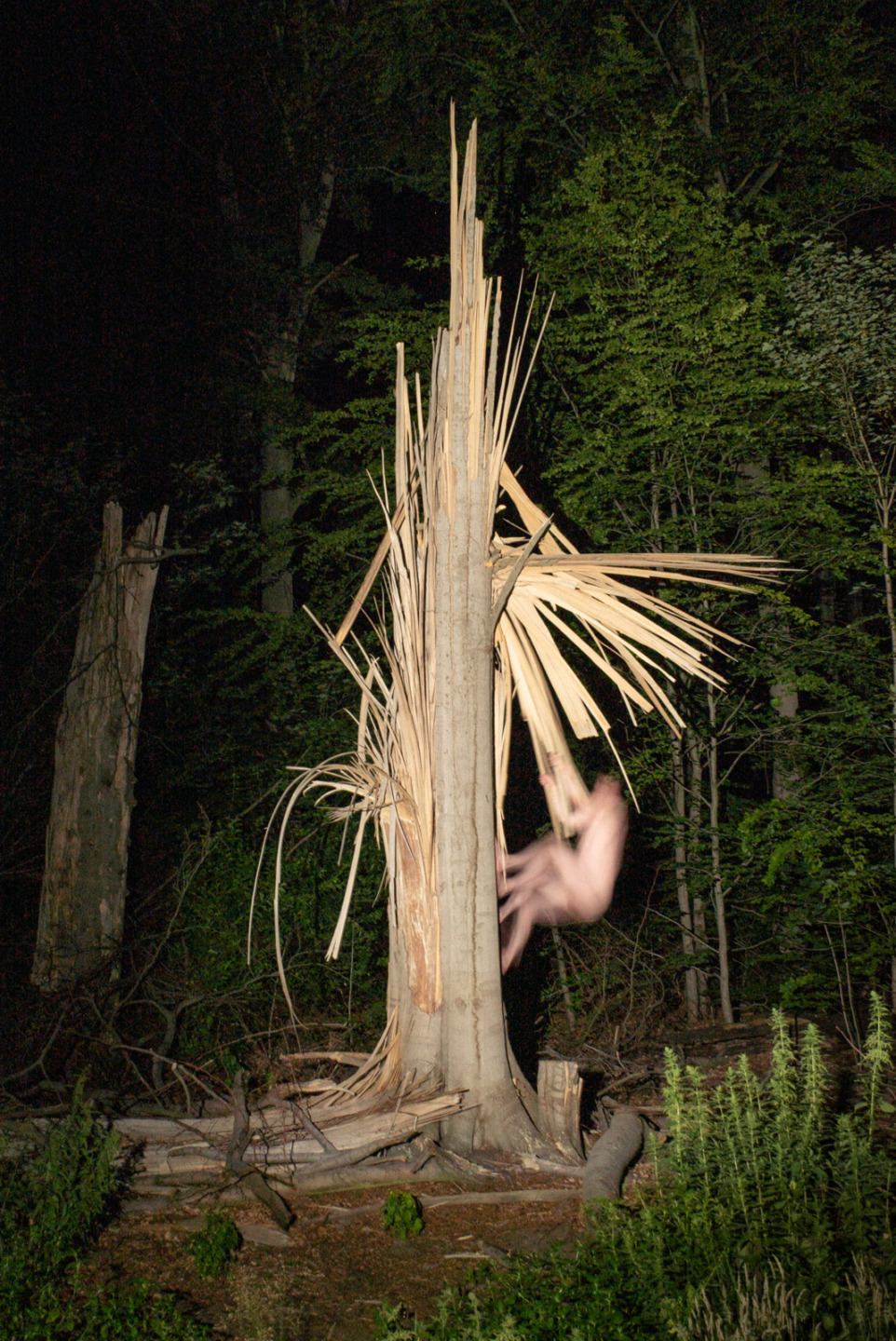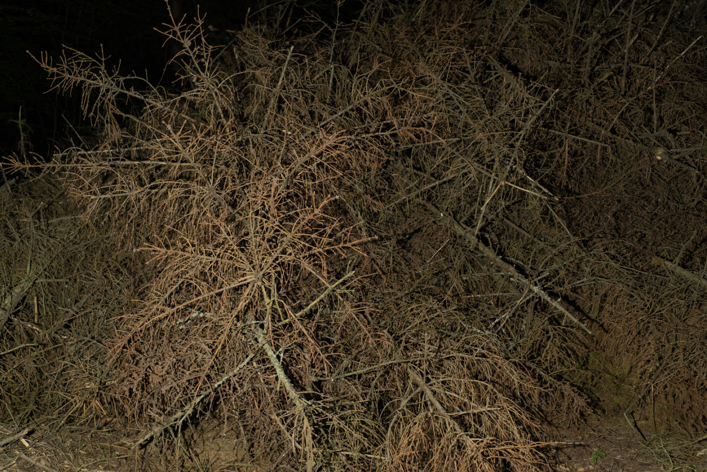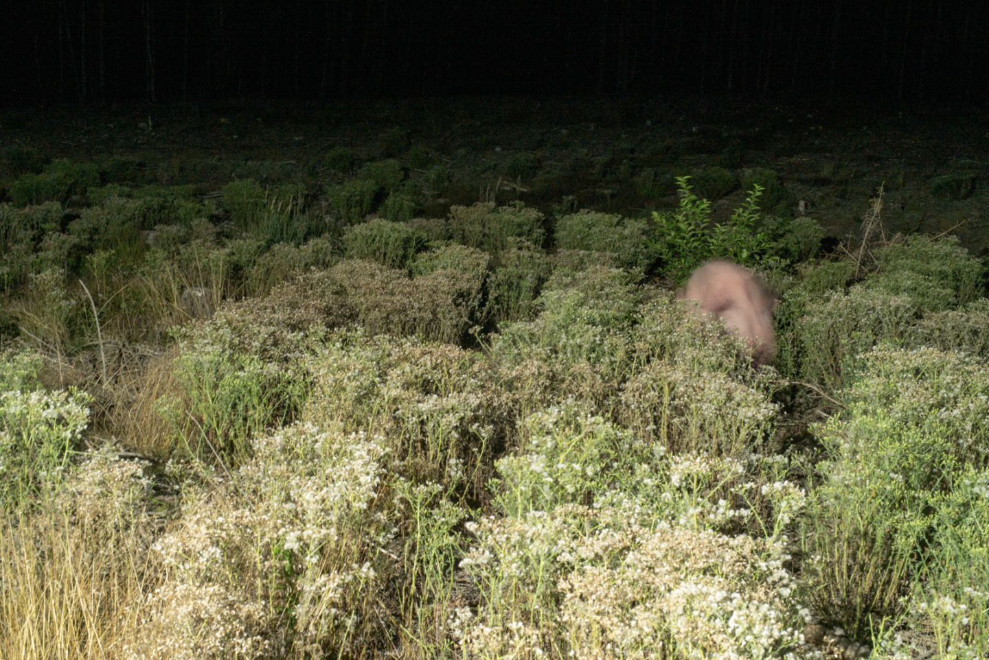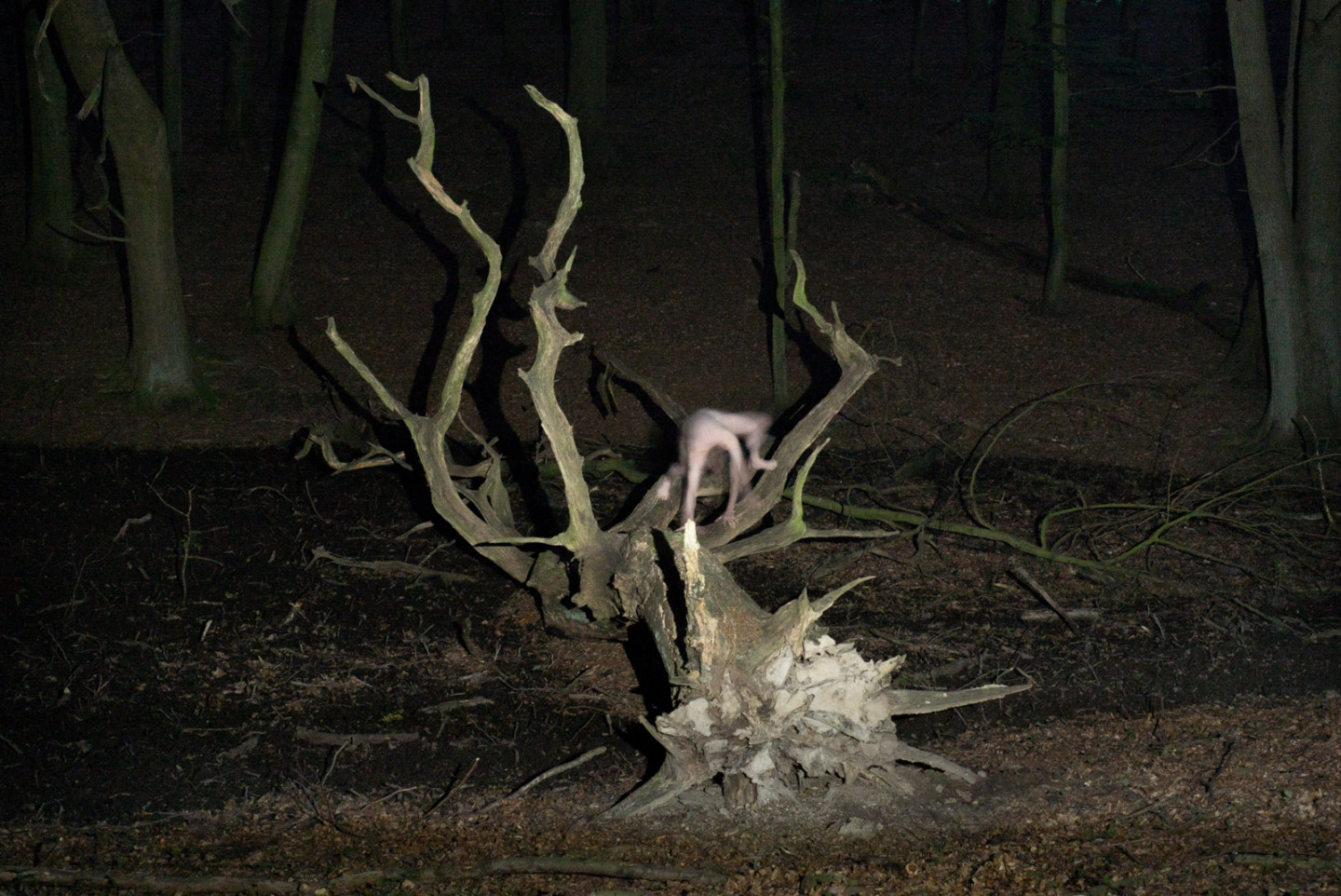 A camera trap takes a picture automatically. In absence of the viewer, the creatures of the forest appear. The forest can as well be seen as a place in the human mind, where the spirit can be free and take any form without the pressure of being observed.